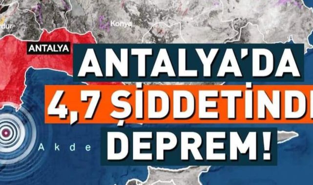 Afet ve Acil Durum Yönetimi Başkanlığının (AFAD) paylaştığı bilgiye göre, Antalya açıklarında saat 12:09’da 4, 6 büyüklüğünde sarsıntı kaydedildi.#DEPREM